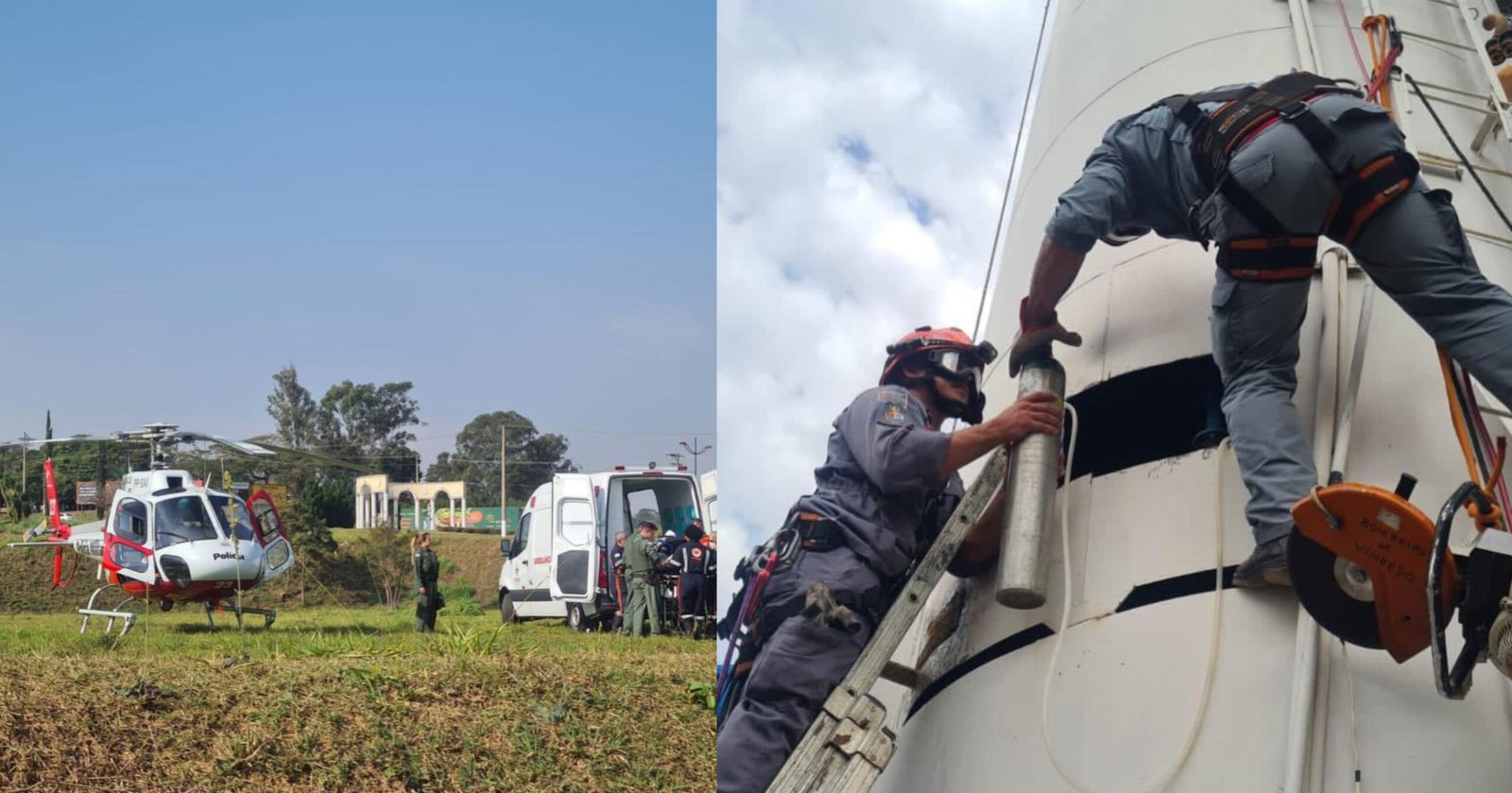 Após um intenso trabalho, o Corpo de Bombeiros de Vinhedo realizou cortes na estrutura da caixa de aço e conseguiu adentrar para imobilizar e retirar a vítima que teve fratura na tíbia e fábula, e traumatismo crânio encefálico. A ocorrência contou com apoio do helicóptero Águia da Polícia Militar (PM), que transportou a vítima para Hospital de Sumaré.