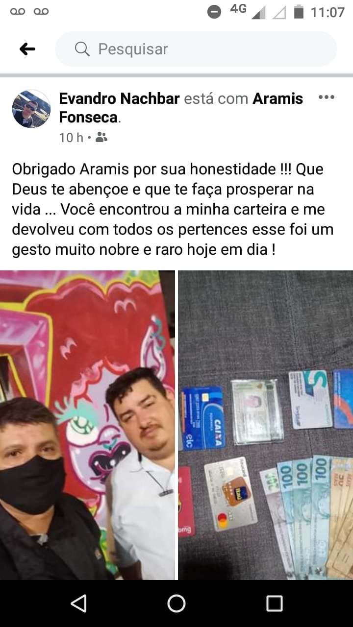 Após feita a publicação, Aramis Fonseca encontrou os documentos na região da Avenida dos Imigrantes, e devolveu do mesmo jeito que Evandro tinha perdido, com os documentos e a quantia em dinheiro.