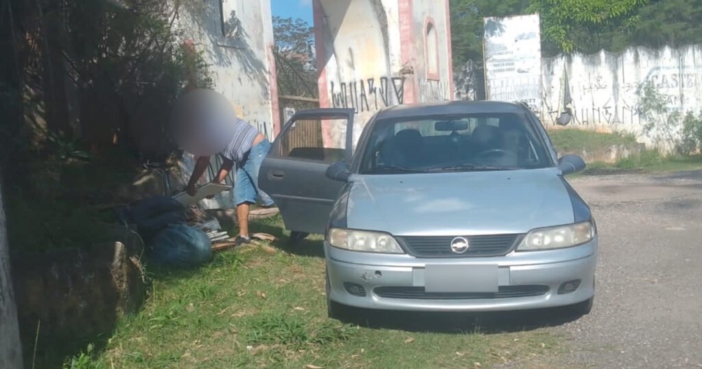 Os agentes avistaram um indivíduo com um veículo parado nas margens da Avenida dos Ipês, no bairro Jardim Promeca. O mesmo estava descartando entulho.