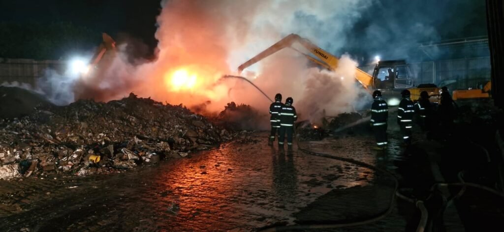 Na noite desta terça-feira (19), por volta das 21h30, um incêndio de grandes proporções atingiu uma empresa de sucatas e reciclagem localizada na Avenida Marginal do Rio Jundiaí, em Várzea Paulista.