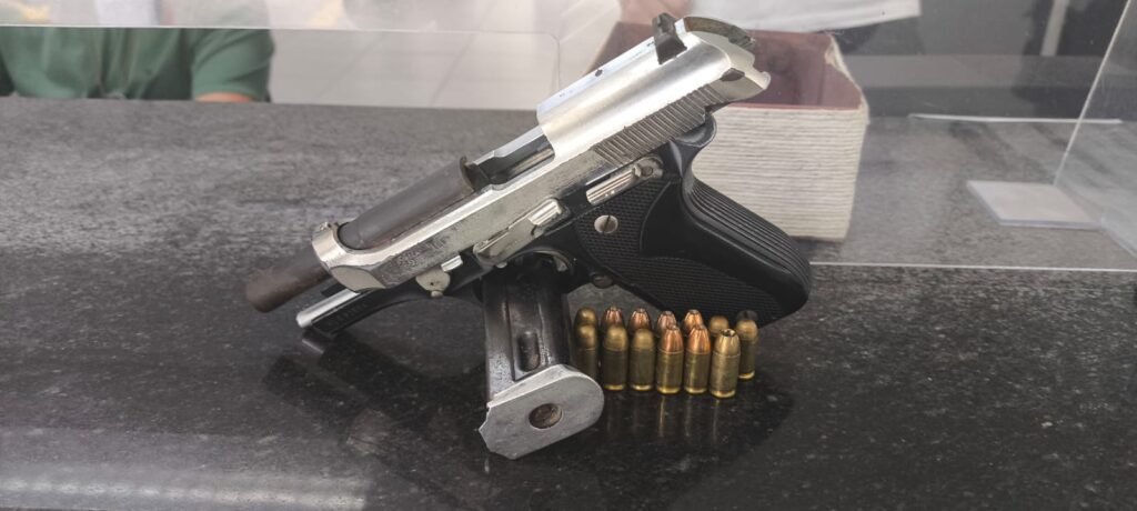 A equipe realizava patrulhamento no momento em que avistou um homem saindo da conveniência de um posto de combustível que, ao notar a presença policial mudou de comportamento. Os policiais realizaram a abordagem e o indivíduo confessou que no interior de seu veículo havia uma pistola de calibre 380, marca Taurus com 13 munições intactas.
