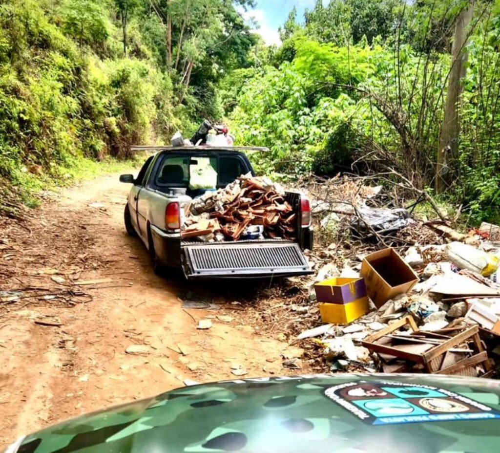 De imediato a ocorrência foi transmitida para a viatura 096 (GCMF Lazarini e GCM Luz) que, ao chegarem pelo local, flagraram 02 (dois) indivíduos e um veículo com resíduos de construção civil.