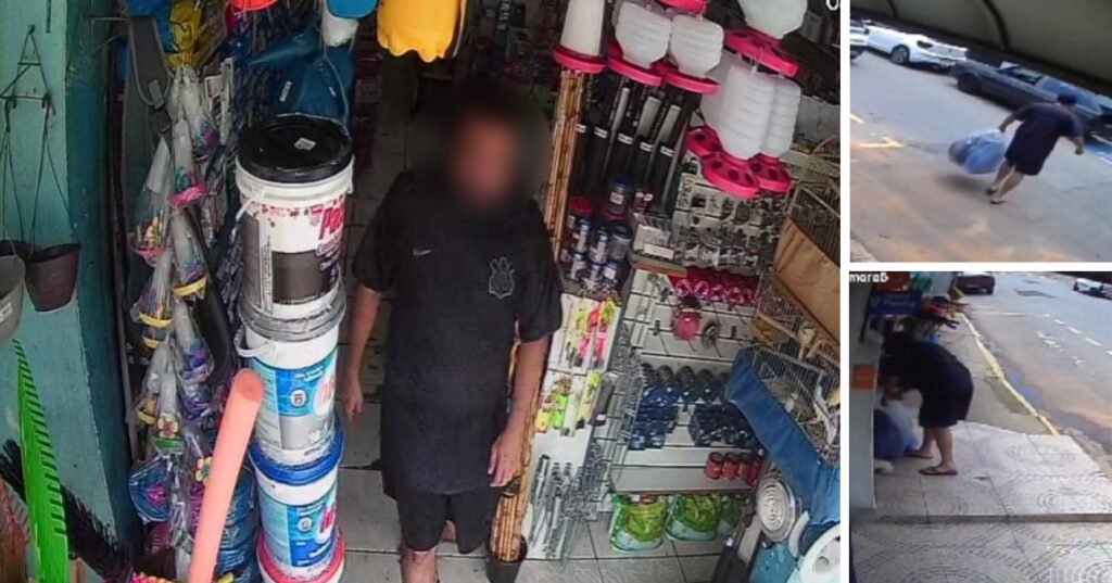 O indivíduo chegou em uma VW Parati, entrou no estabelecimento e pediu ração para aves. Ele pegou a ração, mas, na hora de ir embora, levou algumas mangueiras de piscina e saiu.