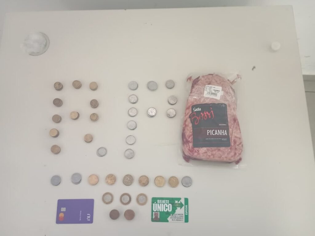 Com um deles, nada de ilícito foi encontrado. Já com o outro suspeito, foram apreendidos moedas, um cartão bancário, um bilhete único, porções de crack e a peça de carne. Questionado, ele confessou ter furtado o produto de um supermercado da região.
