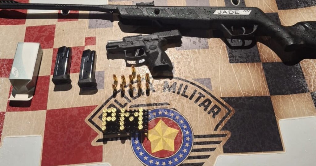 No imóvel do indivíduo, foi localizada uma pistola 9mm e munições do mesmo calibre.