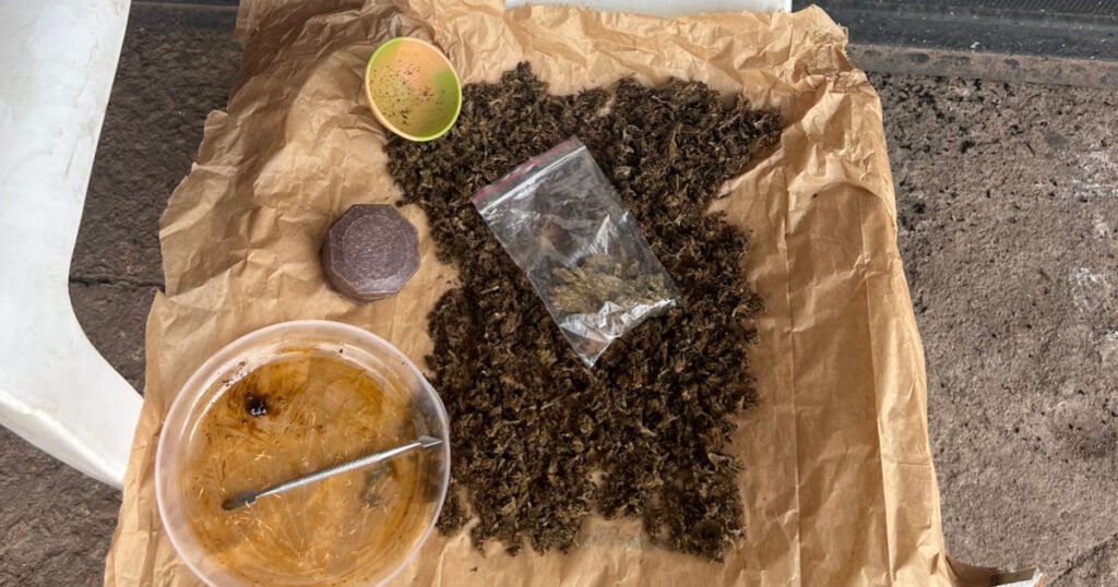 A equipe estava passando próximo a um “lava car” quando avistou um indivíduo sentado ao lado de algo semelhante à maconha.