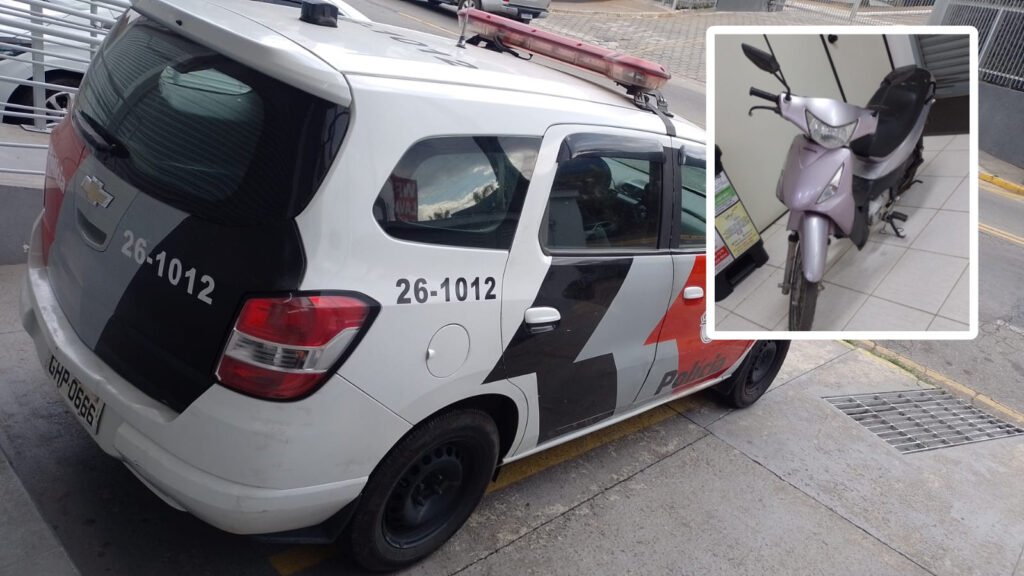 Os policiais foram até o local e constataram que a motocicleta era um “biz”, produto de furto. Através das câmeras de segurança, foi constatado que o indivíduo havia estacionado a “biz” e saído a pé.