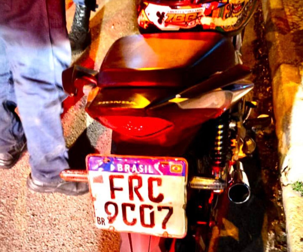 Pela área central, a equipe da viatura 440 (GCM Nascimento e Moura) localizou a motocicleta e constatou que a placa ostentada era de outro veículo, ensejando voz de prisão ao condutor.