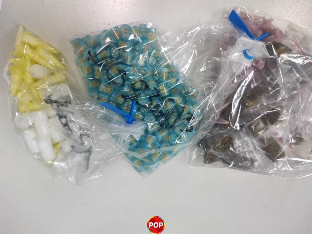 Em revista pessoal, a equipe localizou uma carteira com uma quantia em dinheiro, além de um aparelho celular. Na sacola havia centenas de porções de drogas ( maconha, cocaína e crack).