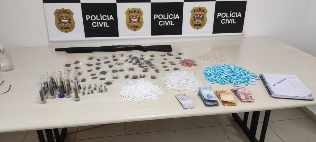 Além disso, foram apreendidas porções de maconha, cocaína, crack, k2 e dinheiro em espécie.