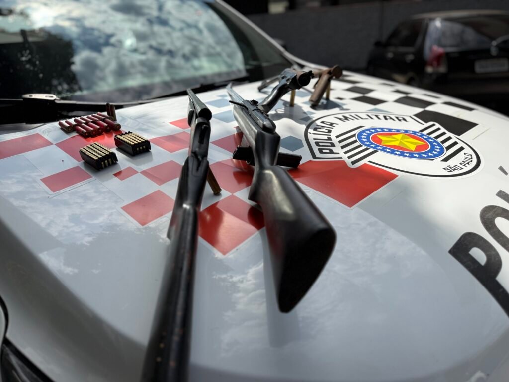 No local, a vítima confirmou as agressões e relatou que o companheiro, ainda dentro do imóvel, possuía armas de fogo. Com a autorização dela, os policiais entraram na residência e realizaram a abordagem.