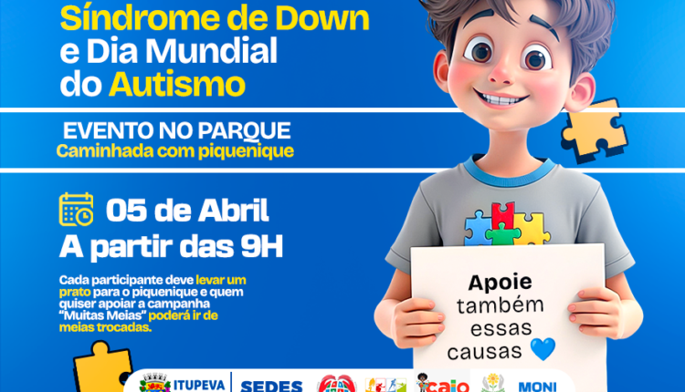 Itupeva promove Caminhada com Piquenique para celebrar o Dia Internacional da Síndrome de Down e o Dia Mundial do Autismo