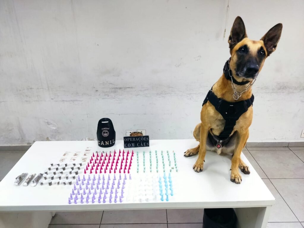 Na sacola havia porções de drogas (crack, k2, haxixe, maconha e cocaína). A droga foi apreendida e apresentada na Central de Flagrantes.