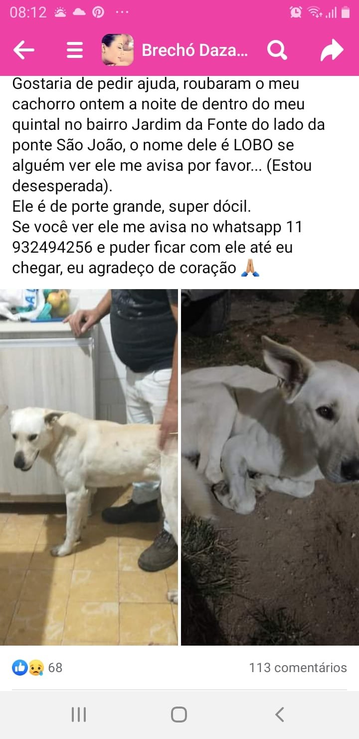 JundiaíPolícia Ladrão furta cachorro na Ponte São João, em Jundiaí por Redação em 18/07/2022 Seguidor da “Pop Tv”, pede ajuda para localizar seu cachorro furtado no bairro Ponte São João, em Jundiaí.