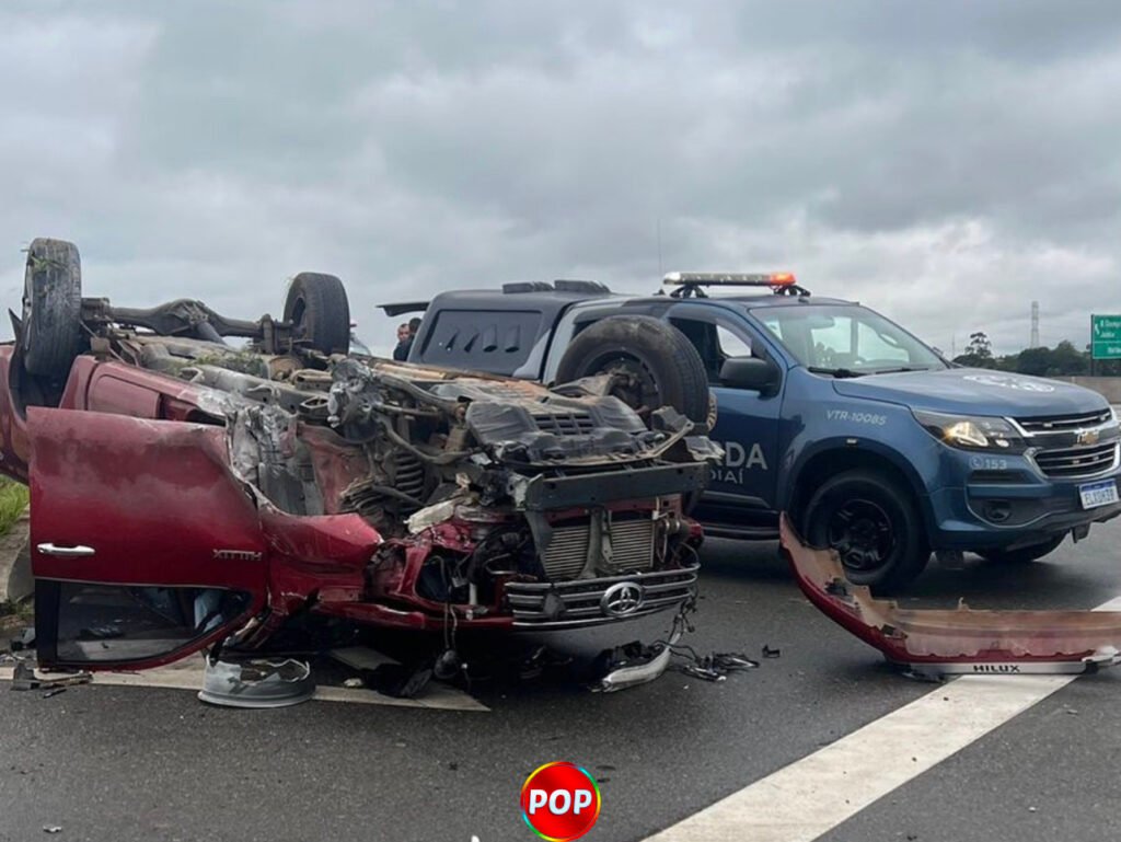 A caminhonete Hilux ficou destruída, e o criminoso foi preso e encaminhado para delegacia de polícia de Jundiaí.