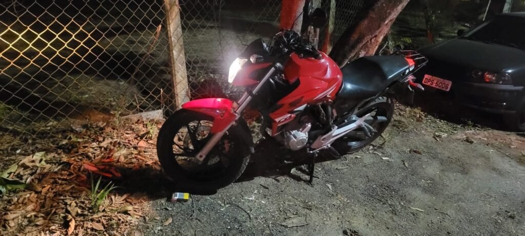 Na tentativa de fuga, o garupa deixou cair o objeto que portava, empreendendo ambos fuga em direção a uma área de matagal, abandonando a motocicleta no local.
