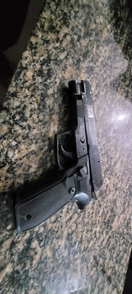 Após a varredura, constatou-se que o objeto deixado pelo indivíduo tratava-se de um simulacro de arma de fogo, utilizado para a prática dos crimes.