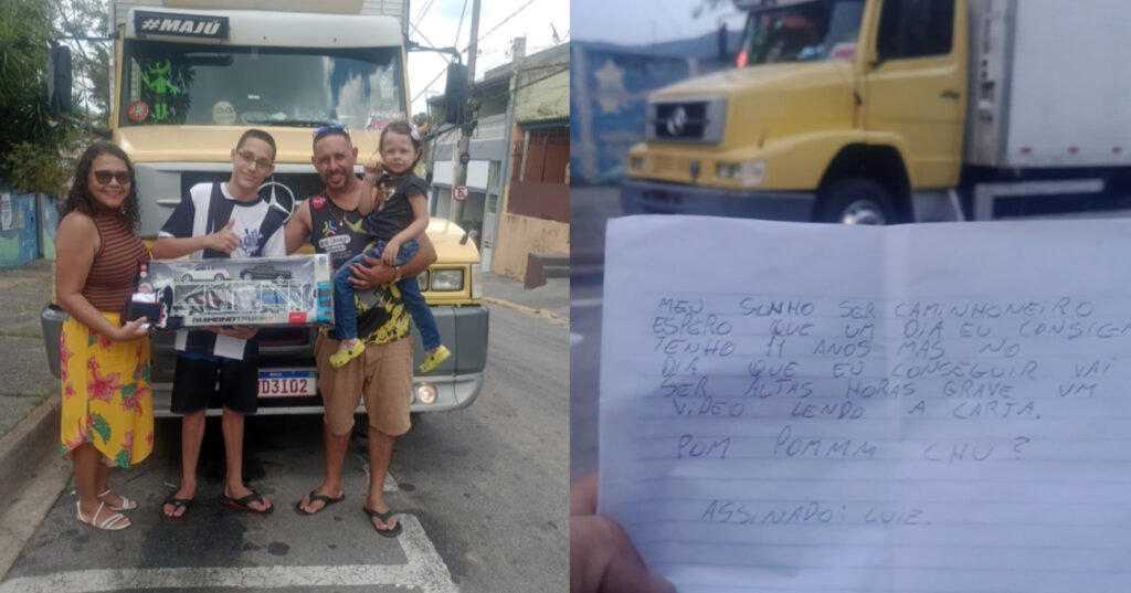 O adolescente de 14 anos, que sonha em ser motorista de caminhão, deixou uma cartinha no caminhão do nosso amigo Carlos Eduardo, mais conhecido como Dudu, que estava estacionado no bairro Parque Guarani, em Várzea Paulista.