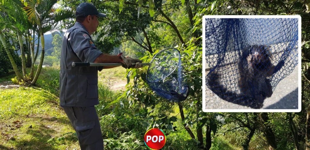O macaquinho estava no interior de uma empresa no bairro Botujuru, ele foi resgatado e solto no seu habitat natural.