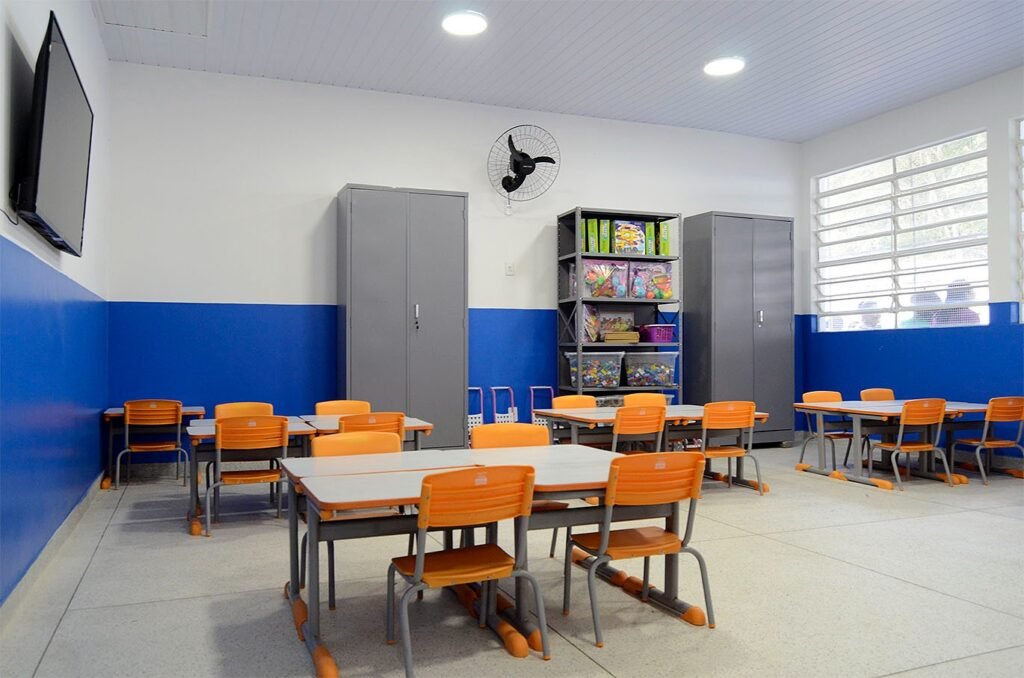 A escola, claramente mais moderna e adequada, está preparada para novos tempos.