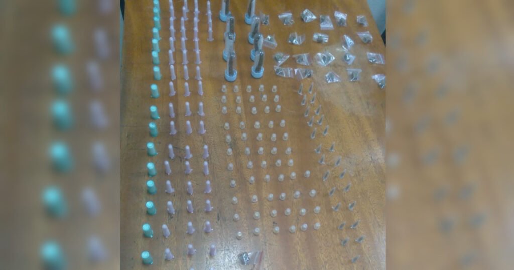 Foram apreendidos 88 pinos de cocaína, 59 pedras de crack e 59 porções de maconha.