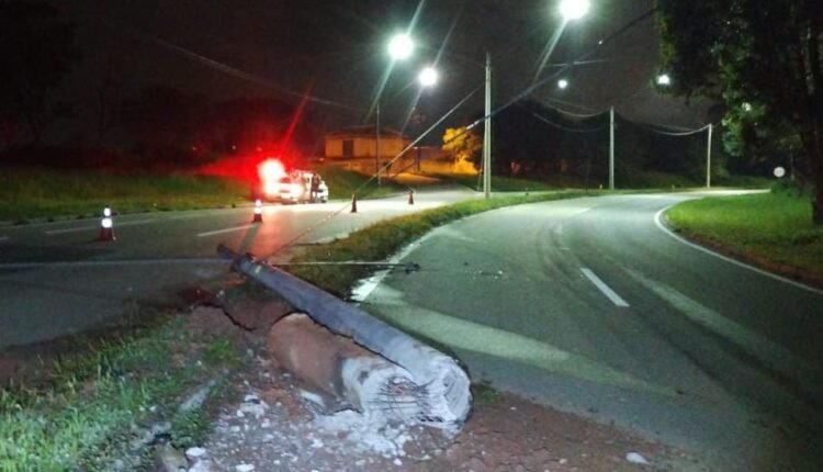 Mais um poste no chão! Motorista perde o controle da direção e colide em poste na Geraldo Dias, em Jundiaí