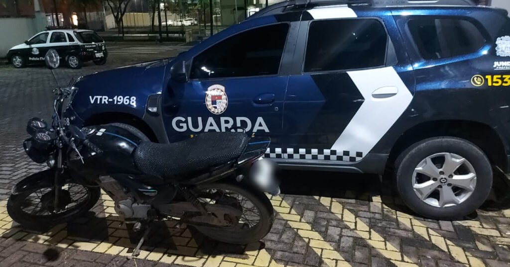 Motocicleta e condutor foram conduzidos até o plantão policial, onde mais uma motocicleta foi apreendida pela Guarda Municipal.