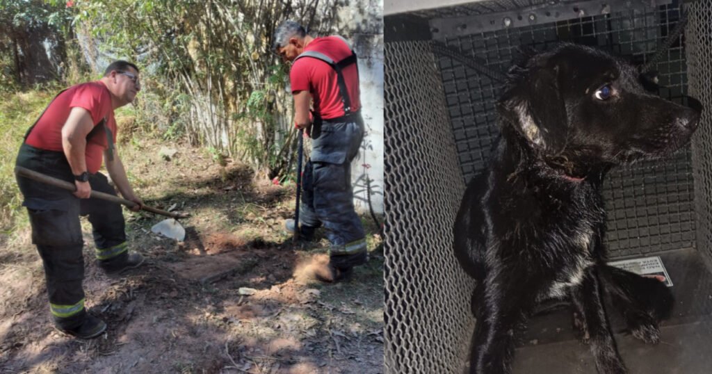 Os bombeiros resgataram um cãozinho que estava em uma tubulação no Bairro Recanto do Lago.