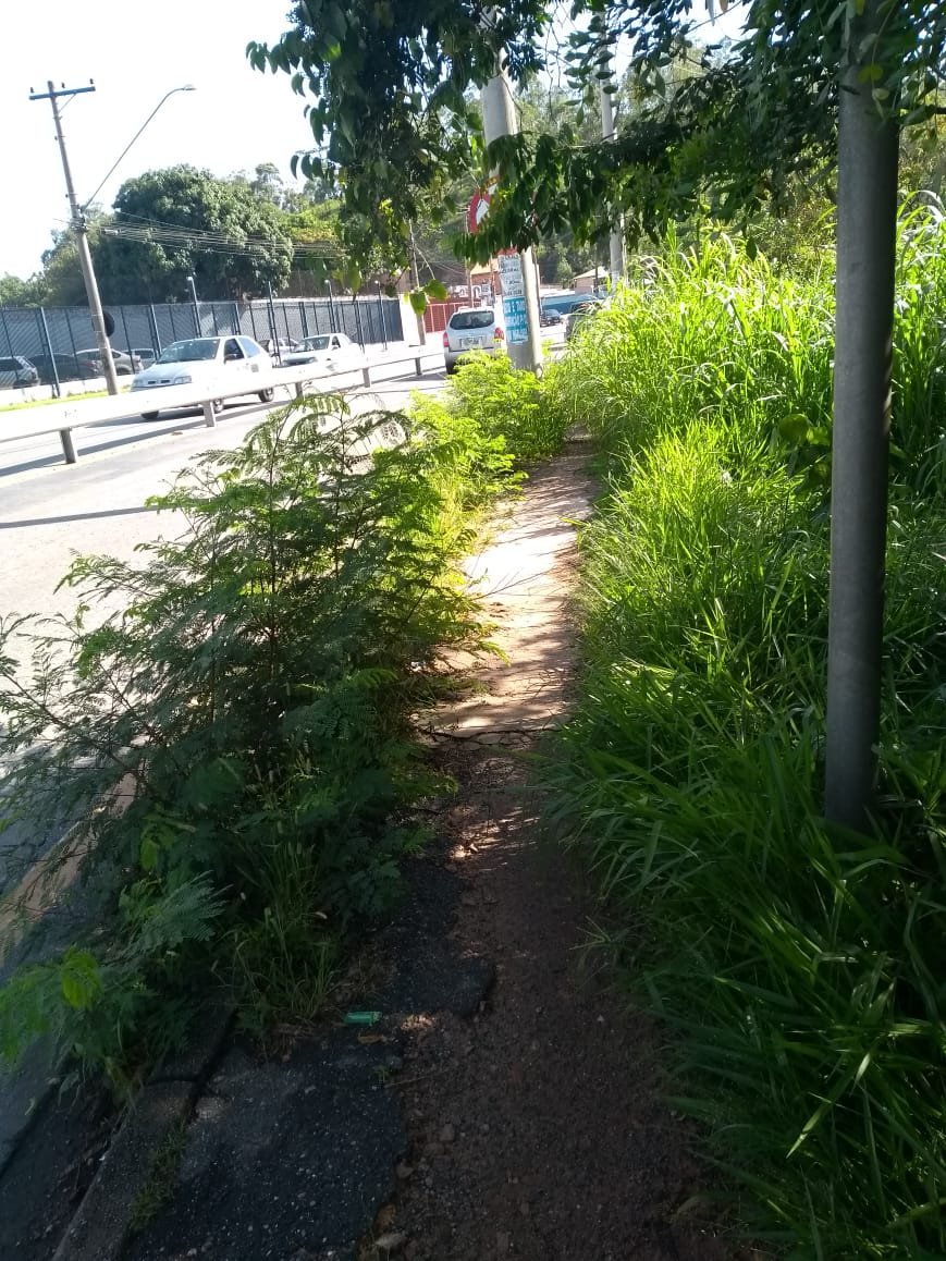 O Ponto de ônibus que fica na Marginal do Rio Jundiaí, em frente a empresa Piccolotur, em Várzea Paulista, está tomado pelo mato.