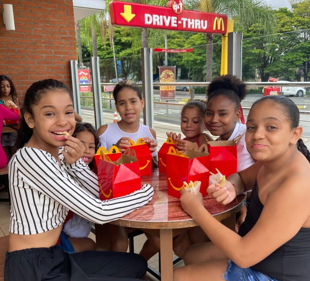 Depois de aproveitar as estações de brinquedos, as quadras e as brincadeiras ao ar livre, a diversão seguiu para o restaurante Mc Donald’s, na avenida 9 de Julho, onde as crianças também receberam lanche, batata frita, refrigerante e sobremesa e se divertiram no brinquedo da área externa do local.