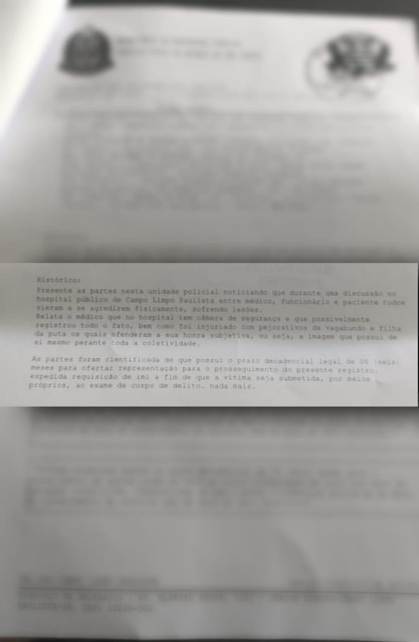 A briga foi parar na delegacia de Policia Civil de Campo Limpo Paulista, foi feito um boletim de ocorrência. Tentamos contato com o paciente supostamente agredido e também com medico, nenhum quis falar.  A prefeitura não se pronunciou sobre ocorrido.
