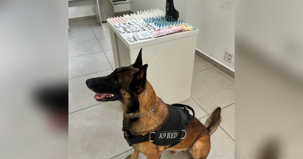 Vale destacar que a sacola só foi localizada graças ao faro do K-9 Red, que é treinado e capacitado para esse tipo de ocorrência.