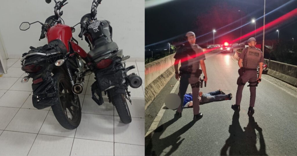 As equipes da 3ª Companhia foram informadas e montaram um cerco na via. A primeira motocicleta, uma Honda Start vermelha, foi abordada na alça de acesso do viaduto Ponte Seca. A segunda, uma Honda CG preta, foi interceptada mais à frente por equipes do Comando de Força Patrulha. Durante a fuga, os condutores e passageiros caíram das motos e foram imediatamente contidos.