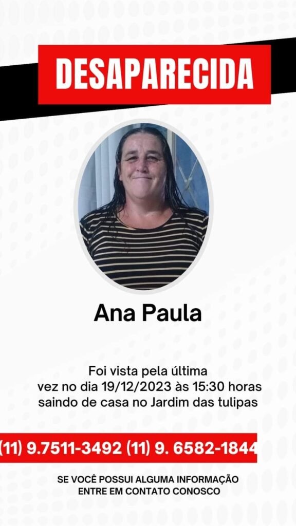 Famílias e amigos pedem ajuda para localizar a Ana Paula, moradora do bairro Jardim das Tulipas, em Jundiaí.