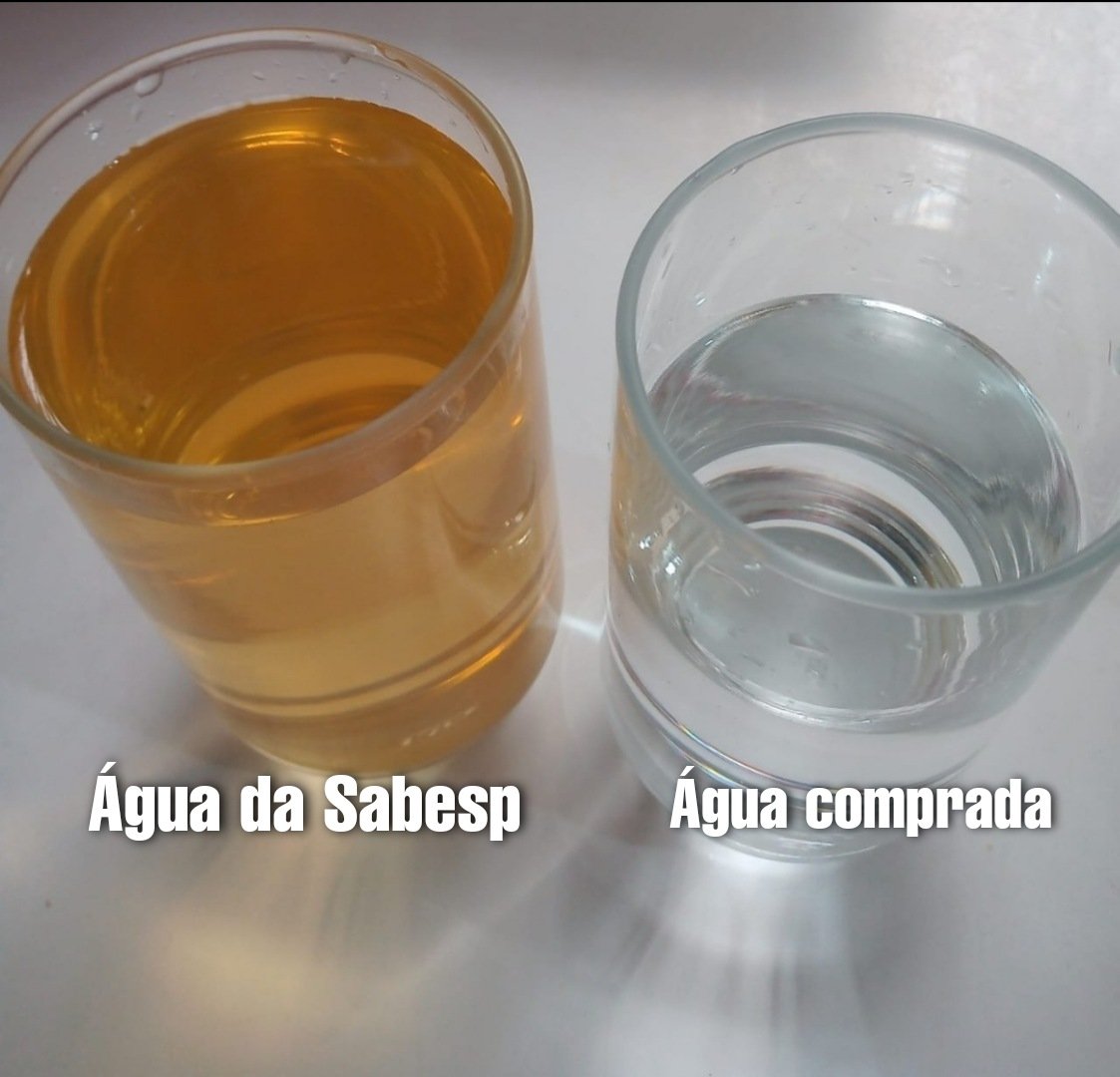 Seguidores da Pop Tv reclamam da coloração da água fornecida pela Sabesp. Um dos nossos seguidores chegou enviar uma foto com água fornecida pela Sabesp no bairro Jardim Primavera, em Várzea Paulista. Nosso Seguidor fez a comparação das águas Sabesp/Água comprada