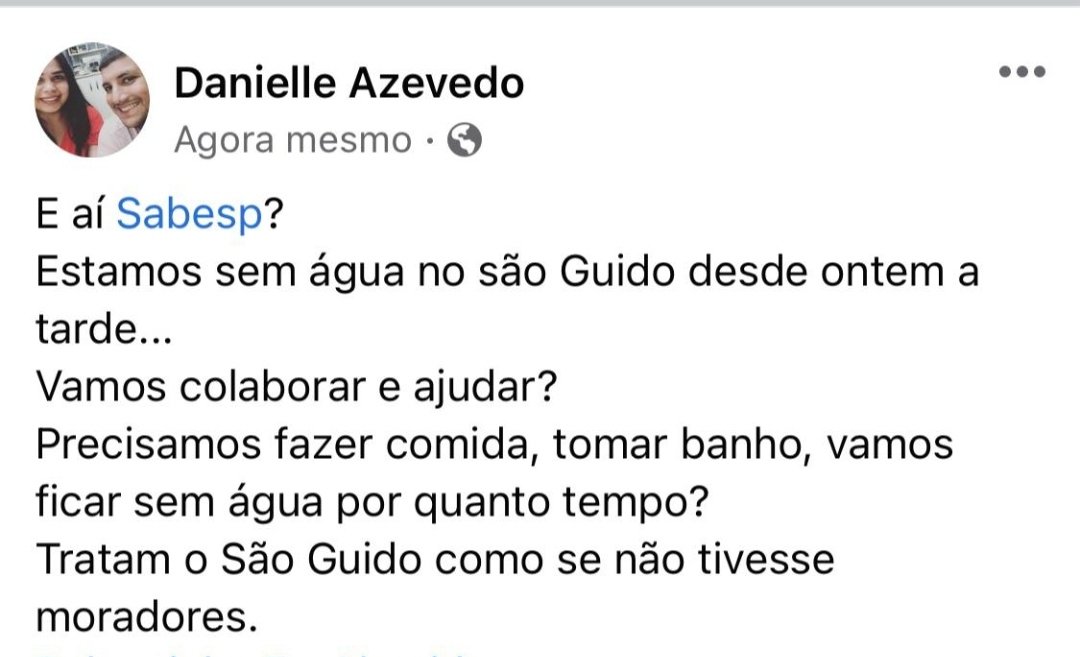 Várzea Paulista Moradores do São Guido reclamam de falta dágua por O estagiário em 17/01/2021 Os moradores do bairro São Guido, em Várzea Paulista, estão reclamando da falta dágua neste final de semana.