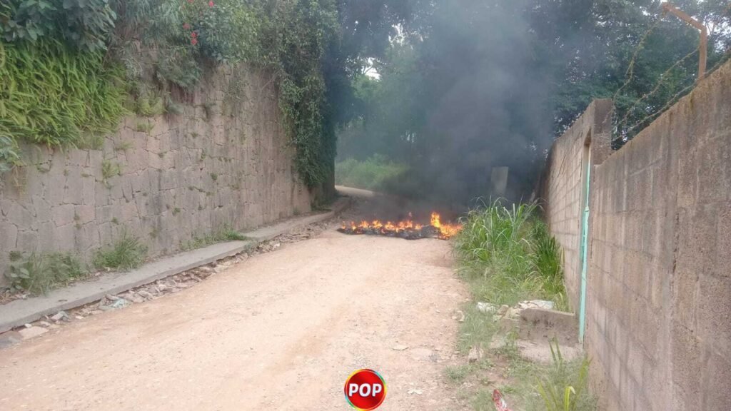 Os moradores colocaram fogo em pneus e interditaram a via em forma de protesto.