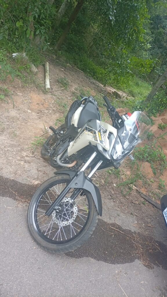 A ocorrência foi registrada por meio de boletim eletrônico e notificação de ocorrência complementar, conforme os procedimentos adotados. Como a motocicleta estava sem placa, a equipe prestou apoio ao proprietário para condução até o plantão policial.