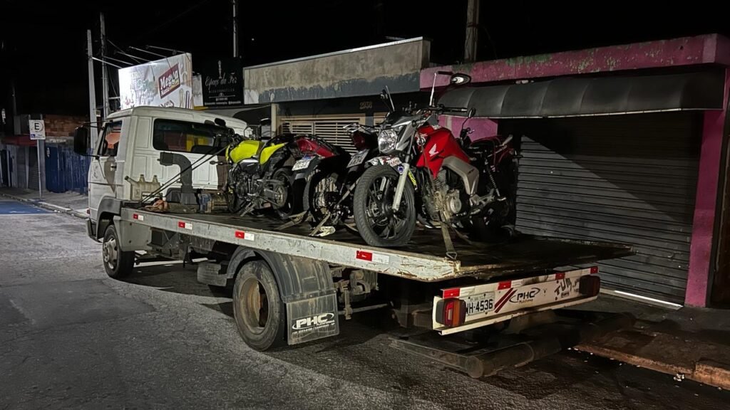 Quatro motocicletas que estavam causando transtorno para população durante a madrugada, foram apreendidas pelas equipes.