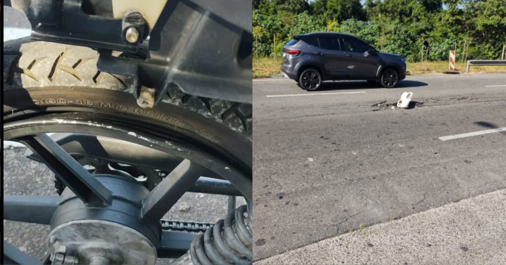 Ele pede ao poder público que realize a manutenção antes que ocorram mais acidentes, além de alertar os demais motociclistas.