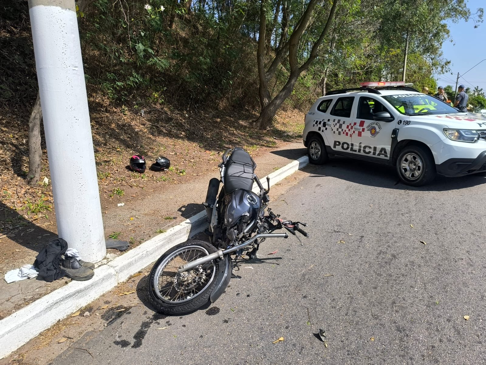 Motociclista bate contra poste de energia elétrica na Avenida dos Imigrantes.