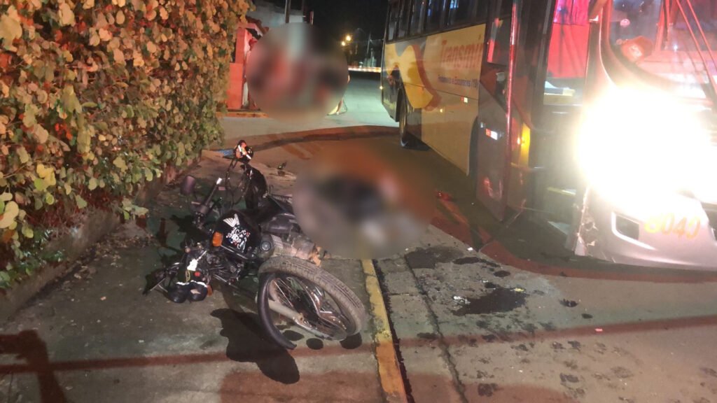 Na noite de ontem (21), um indivíduo conduzia uma motocicleta quando, no cruzamento da Avenida Ticiano com a Rua Napolis, acabou colidindo contra um ônibus fretado.