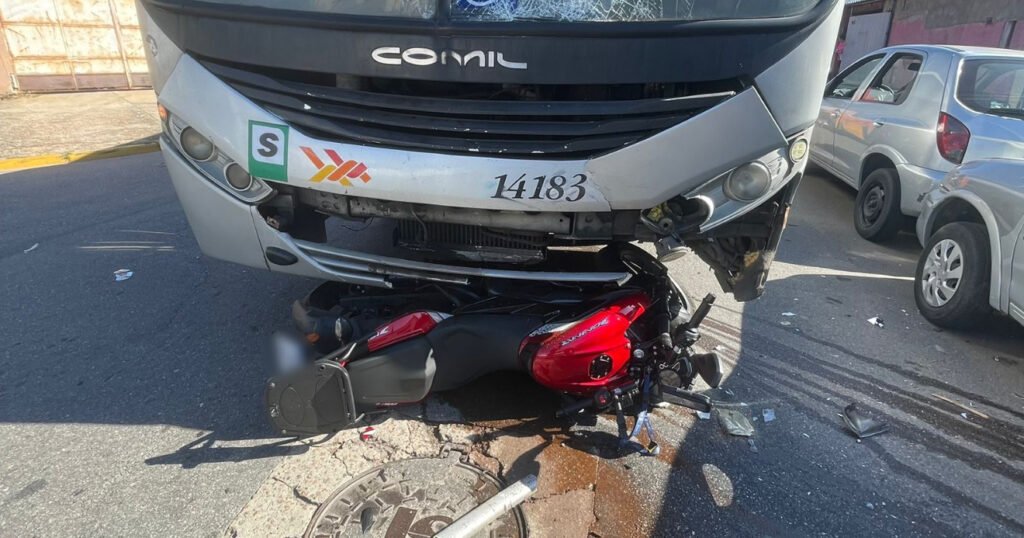 A vítima colidiu contra um ônibus na Avenida Padre Jordan, no bairro Jardim Bertioga.
