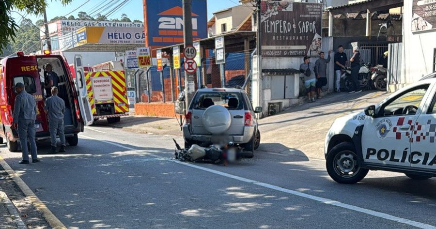 A vítima colidiu contra um veículo em frente ao posto Ipiranga, sendo socorrida pela equipe do Corpo de Bombeiros.