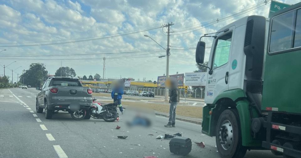 Na manhã desta quinta-feira (24), um motociclista colidiu contra um veículo na Rodovia Vereador Geraldo Dias, em frente ao terminal Cecap, em Jundiaí.