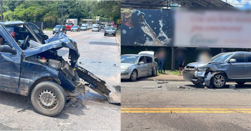 Na tarde desta quarta-feira (1º), ao menos três veículos se envolveram em um acidente de trânsito.