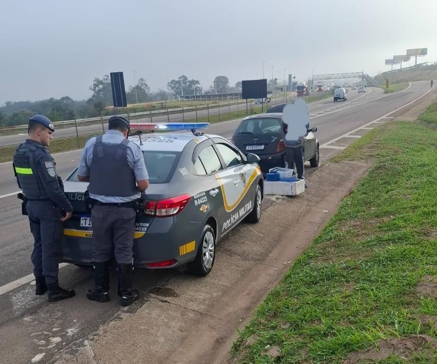 Nesta terça-feira (08), a equipe da Polícia Militar Rodoviária visualizou o veículo na Rodovia Santos Dumont, altura do km 63, sendo feita a abordagem.