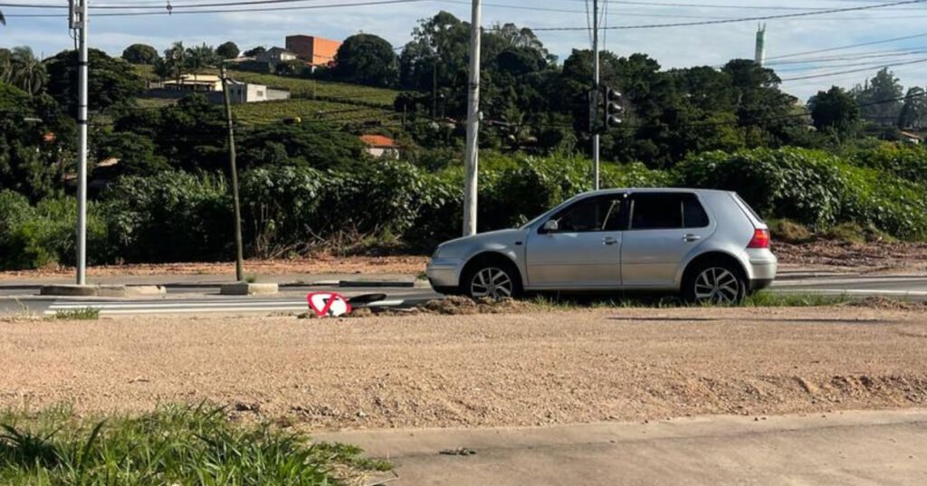 Na manhã desta segunda-feira (10), um veículo Golf prata bateu contra um poste de sinalização em Jundiaí.