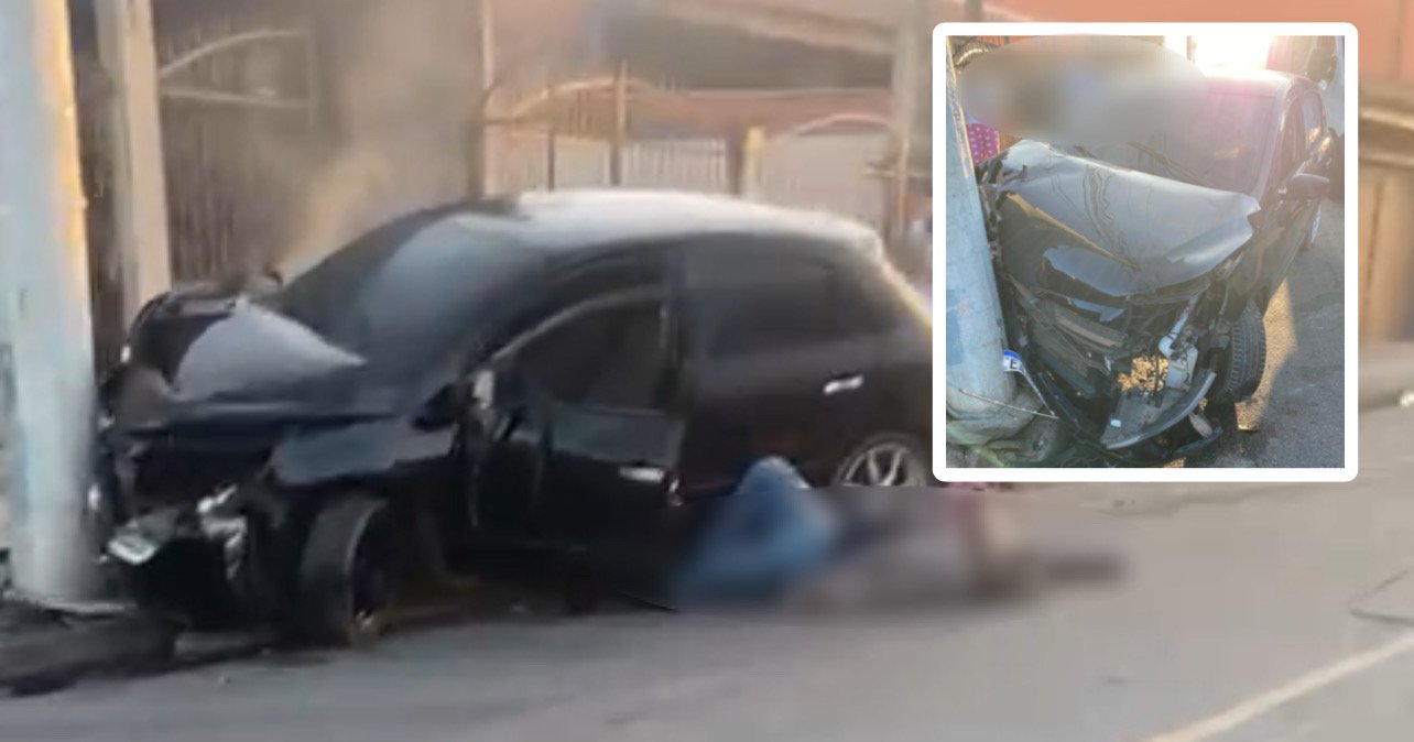 Motorista perde o controle da direção e bate contra poste de energia elétrica na Avenida Pacaembu, na região da Vila Real.