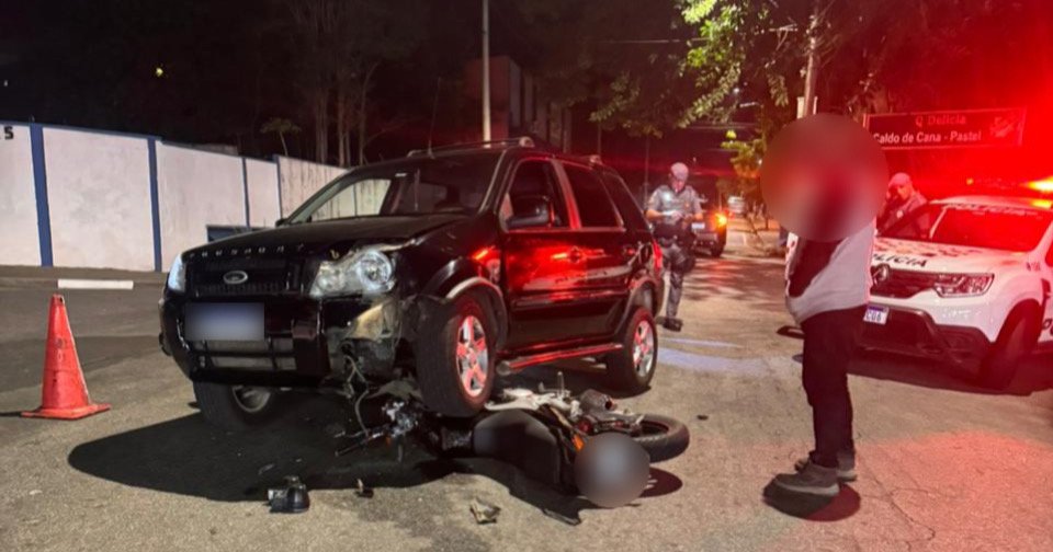 No local, a equipe se deparou com uma colisão entre um automóvel e uma motocicleta.